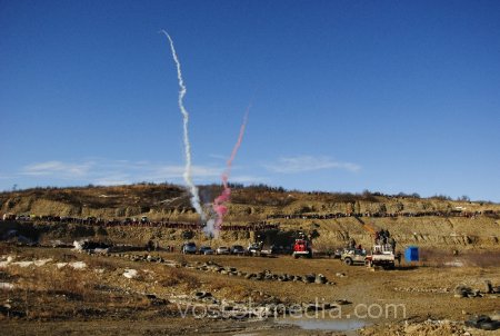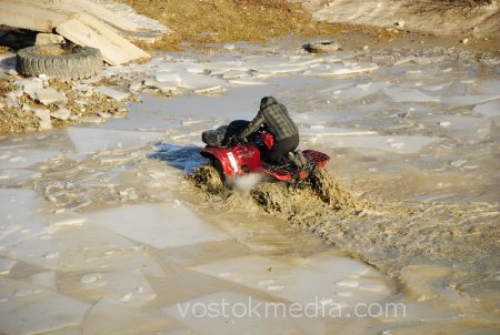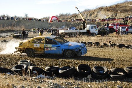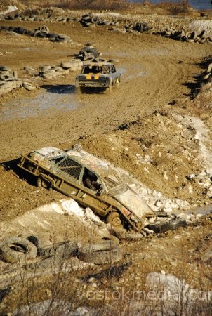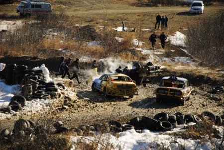 Любители экстрима собрались на карьере в районе бухты Гертнера. Шесть специально подготовленных к экстремальным гонкам автомобилей приняли участие в трёх заездах. Раскисшая трасса, на которой удержать автомобиль крайне сложно, только добавила зрелищности гонкам: в каждом заезде не обошлось без вылетов на обочину. В перерывах между стартами участники оперативно ремонтировали своих железных коней, а зрители могли проголосовать за понравившихся гонщиков.