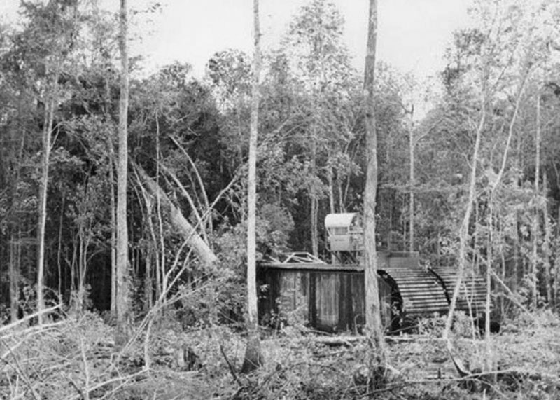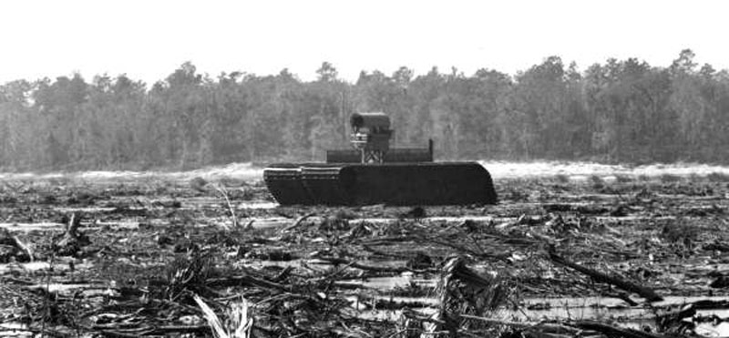 В инете информации об уничтожителе лесов очень мало, очевидно, американцы по какой-то причине стесняются его афишировать. Думаю, что изначально машину делали для Индокитая как более радикальную альтернативу «эйджент оранжу», однако туда она не попала, а использовалась во Флориде при расчистке местности для строительства гидротехнических сооружений.
