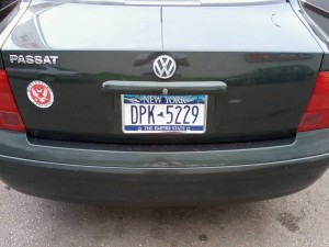 Заказной номер в штата Нью-Йорк стоит от $60 (стандартный золотой) до $90 (с картинками). Потом надо будет платить еще по 30 долларов ежегодно. Номер должен быть уникальным и состоять из 2-8 символов. При оформлении заявки надо объяснить значение надписи. Заказные номерные знаки выдаются вторым комплектом. Можете ездить со стандартным, а можете повесить их. В полицейской базе они привязаны к одной машине.