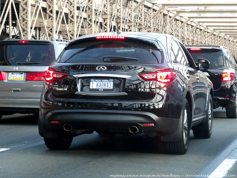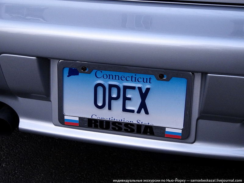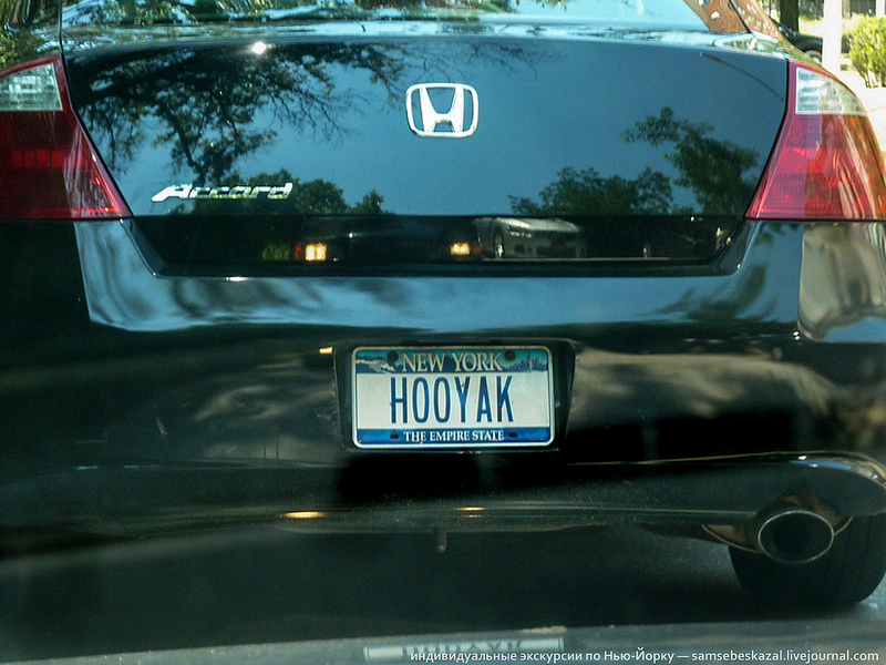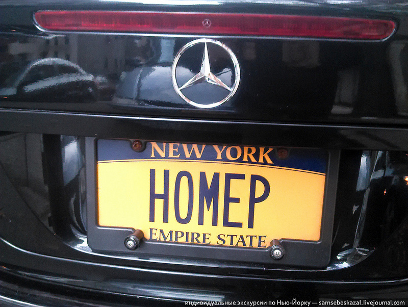 Заказной номер в штата Нью-Йорк стоит от $60 (стандартный золотой) до $90 (с картинками). Потом надо будет платить еще по 30 долларов ежегодно. Номер должен быть уникальным и состоять из 2-8 символов. При оформлении заявки надо объяснить значение надписи. Заказные номерные знаки выдаются вторым комплектом. Можете ездить со стандартным, а можете повесить их. В полицейской базе они привязаны к одной машине.
