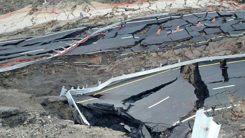 Сообщается, что данный катаклизм произошел после семи небольших землетрясений в диапазоне магнитуд от 1,3 до 4,3. Данный участок трассы находится на линии известного геологического разлома. Чрезвычайной ситуации поспособствовал также и сильный дождь.