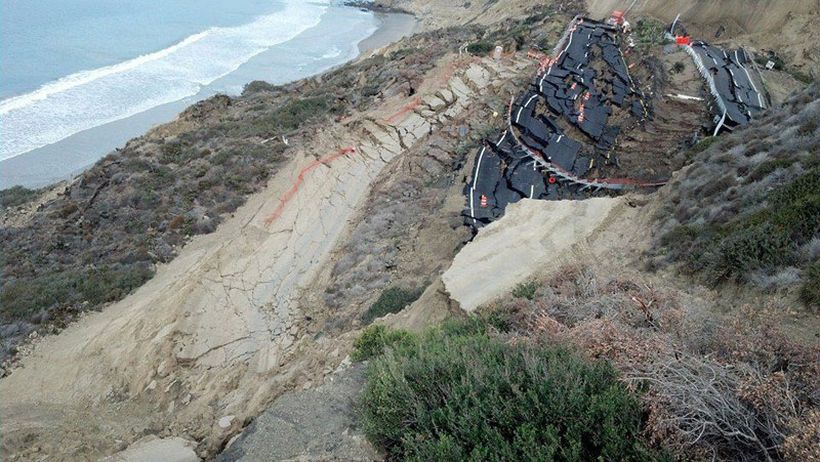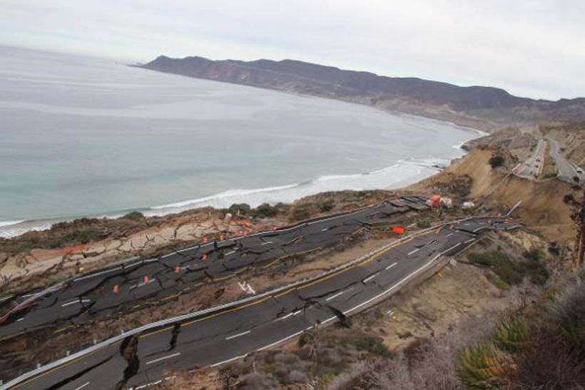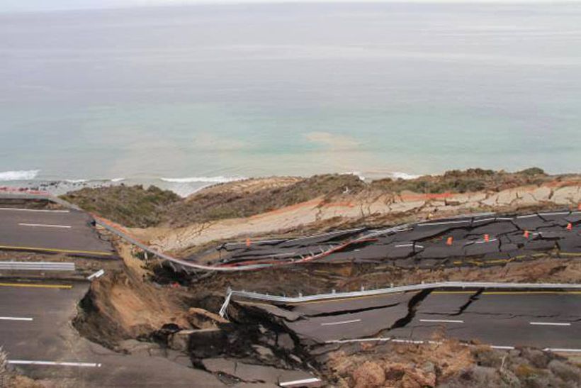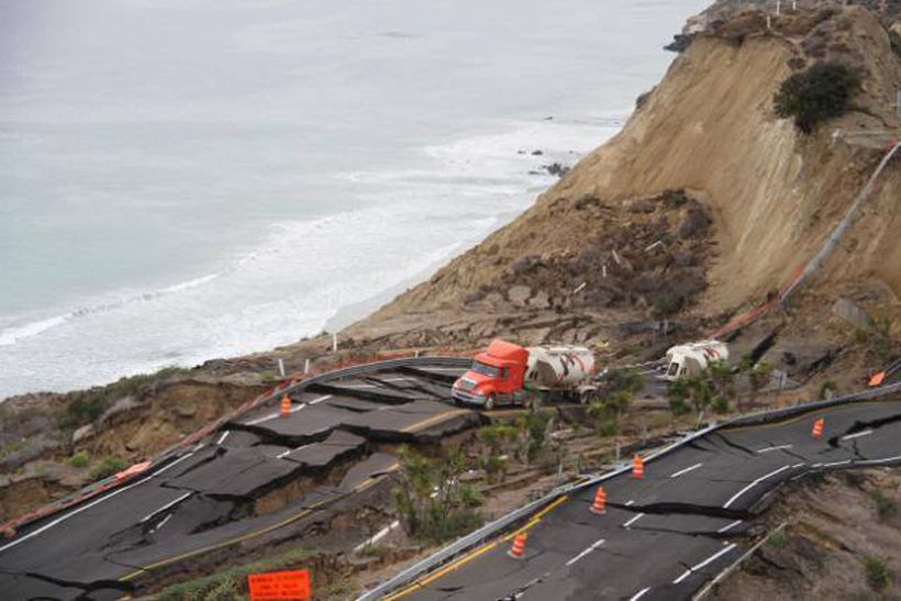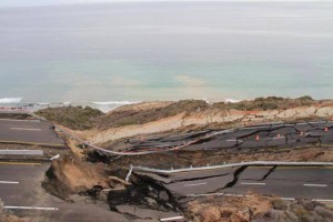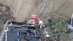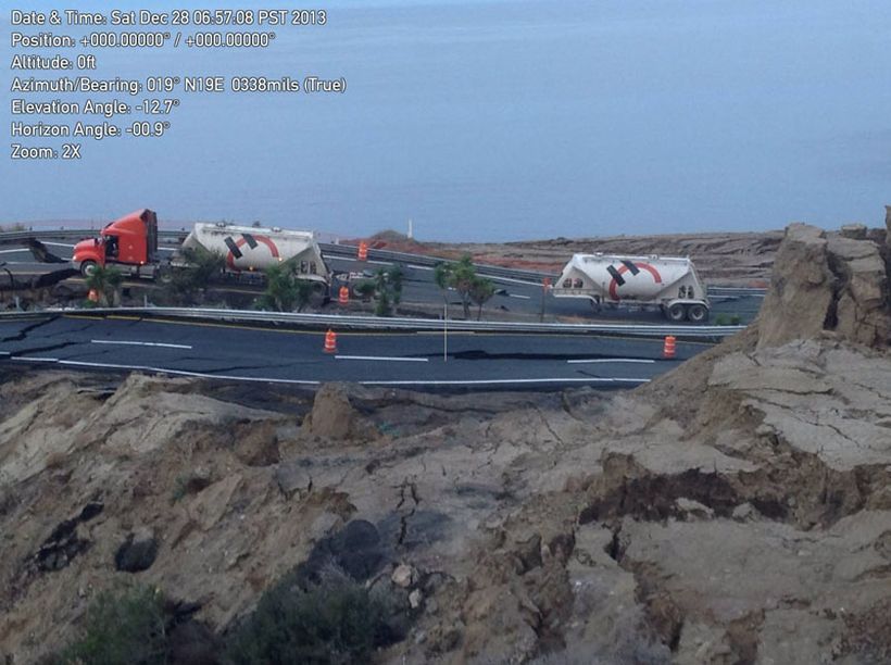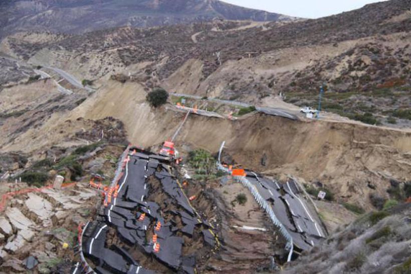 Серия не очень сильных землетрясений и дождь стали причинами того, что почти 300-метровый участок платной автострады возле мексиканского города Энсенада провалился.