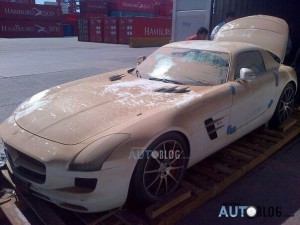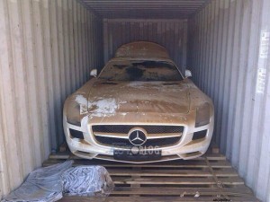 Новый суперкар Mercedes-Benz SLS AMG упал с корабля во время доставки из Германии в Аргентину.