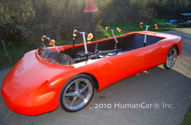 В США создан автомобиль на человеческой тяге, способный двигаться со скоростью до 100 км/ч и в то же время поддерживать водителя и пассажиров в хорошей физической форме. Новинка получила название HumanCar Imagine PS.