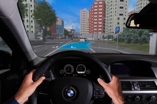 В 2004 году BMW Group первым из производителей автомобилей начала разработку Head-Up Display (HUD) — системы дополненной реальности для водителей. В начале 2011 года было опробовано использование полноцветной графики. Сейчас исследователи и разработчики BMW работают над новой вехой в этой технологии: накладывание виртуальной «маркировки» на реальные объекты внешней среды, таким образом, чтобы навигационная информация или информации из систем автомобиля отображалась в соответствии с объектами на дороге. Навигационные инструкции могут отображаться прямо на дороге, и транспортных средствах, или безопасность/опасность соответствующих объектов может быть выделена и отмечена в контексте.