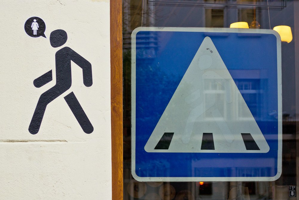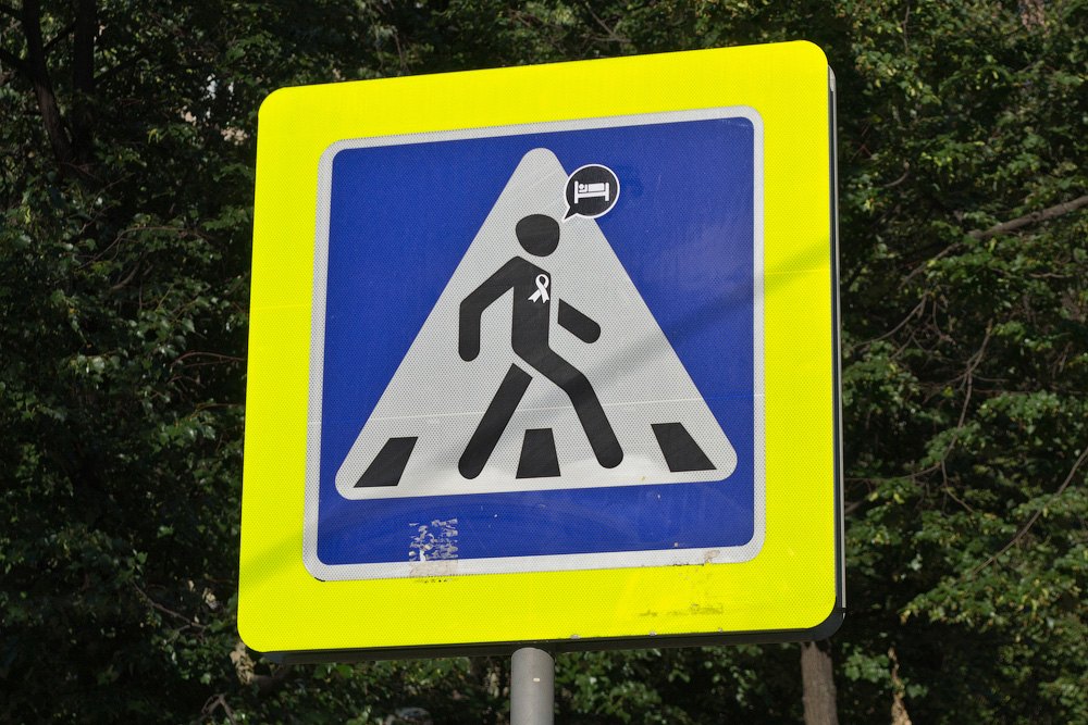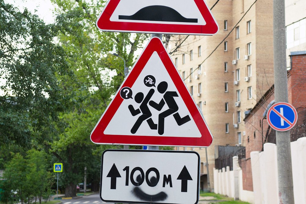 В Европе обыгрывание дорожных знаков весьма популярно. Теперь вот попытка от русских стрит–арт представителей.