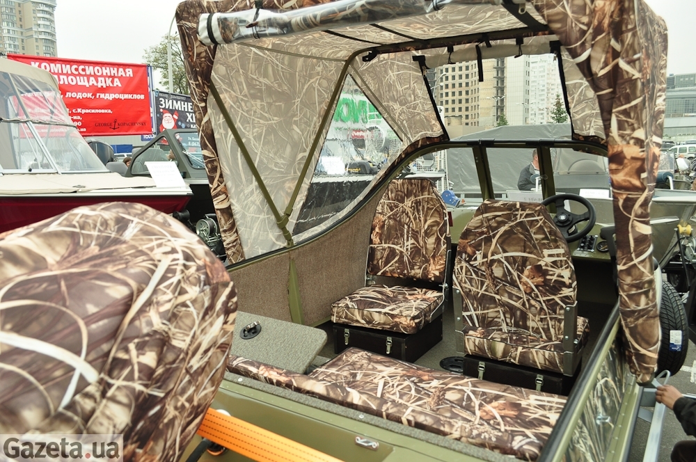 Среди представленных на выставке лодок — больше всего было резиновых, они стоили от 800 грн. Самые дорогие плавсредства — из нержавейки и пластика, оснащены японскими двигателями и эхолотом. Стоимость таких было от $30 тыс.